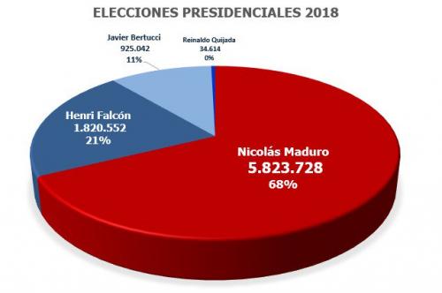 En término de caudal propio de votos, Nicolás Maduro obtuvo una cifra cercana a los seis millones de sufragios (5.823.728 en el primer corte con el 92% escrutado), perdiendo una parte de los siete millones y medio de votos obtenidos en 2013.