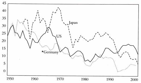 Los 30 años dorados (1945-1975) del capitalismo central -USA, Europa, Japón-, que permitió el crecimiento de salarios y ganancias, mientras el llamado tercer mundo profundizaba su miseria. Termina en los 70’s, cuando la expansión se hace insostenible porque la producción creciente -avance de las fuerzas productivas mediante- encuentra sus límites en una demanda insuficiente. Finaliza el período y para que el sistema siga funcionando, debe sostener la tasa de ganancia que exigen los dueños del capital para su reproducción.