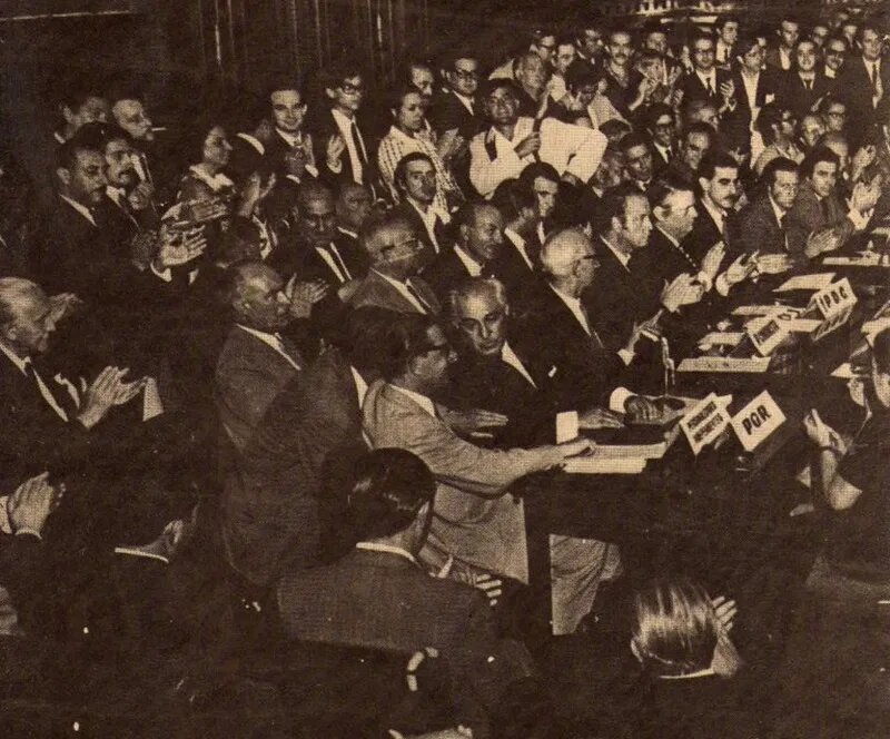 "La unidad política de las corrientes progresistas que culmina con la formación del Frente Amplio -cerrando un ciclo en la historia del país y abriendo, simultáneamente, otro de esperanza y fe en el futuro, se gestó en la lucha del pueblo contra la filosofía fascistizante de la fuerza. Y esa unión, por su esencia y por su origen, por tener al pueblo como protagonista, ha permitido agrupar fraternalmente a colorados y blancos, a demócratas cristianos y marxistas, a hombres y mujeres de ideologías, concepciones religiosas y filosofías diferentes, a trabajadores, estudiantes, docentes, sacerdotes y pastores, pequeños y medianos productores, industriales y comerciantes, civiles y militares, intelectuales y artistas, en una palabra, a todos los representantes del trabajo y de la cultura, a los legítimos voceros de la entraña misma de la nacionalidad. Porque es un movimiento profundo que enraíza con las puras tradiciones del país, que recoge y venera las construcciones que vienen del fondo de la historia, y tiene, simultáneamente claros objetivos para alcanzar un porvenir venturoso, siente que su vertiente más honda lo enlaza con la esclarecida, insobornable y combatiente gesta del artiguismo" Declaración Constitutiva del Frente amplio 5 de febrero de 1971